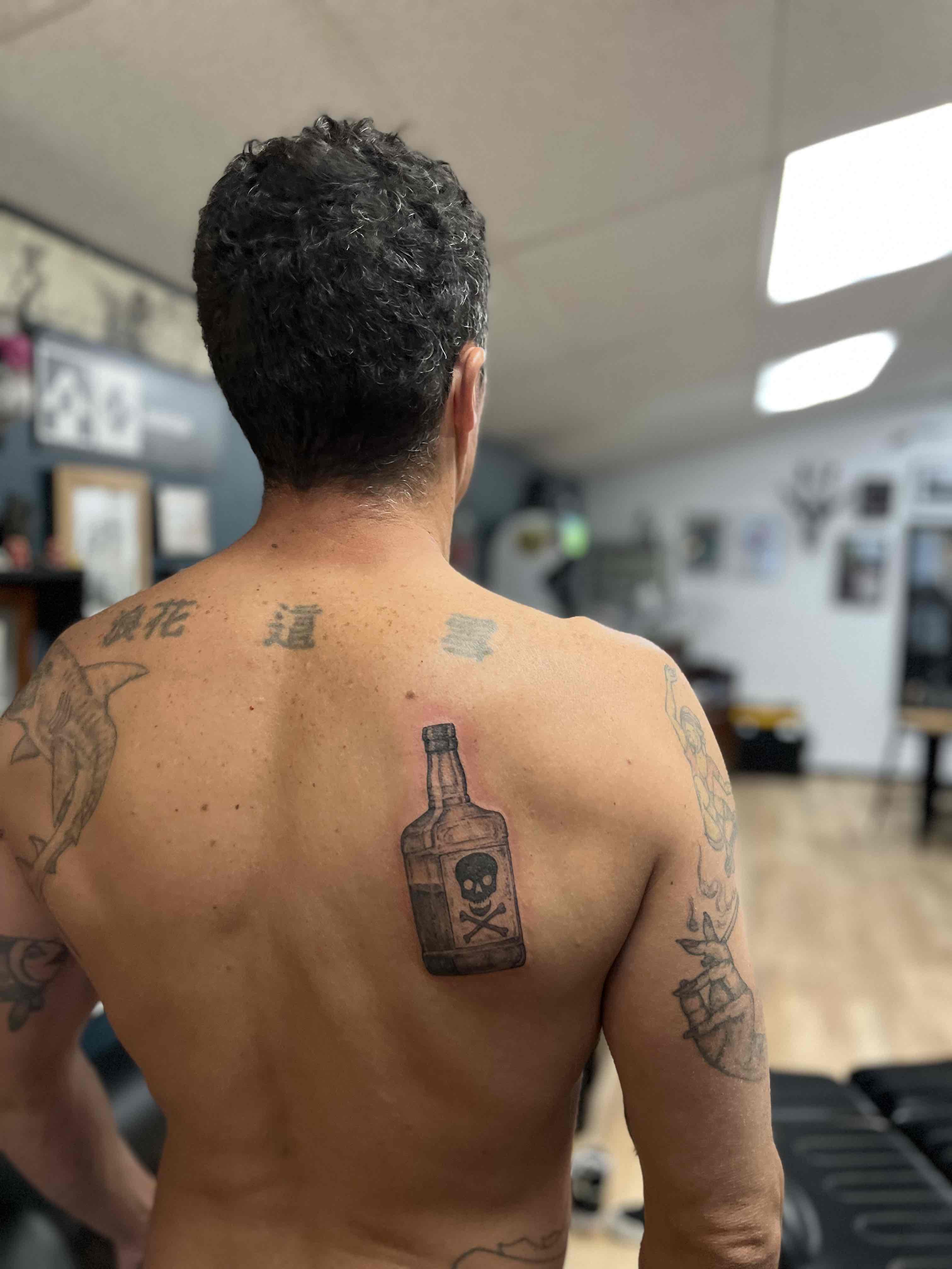 New tat. I have some old tattoos that have a lot to do with partying. This is a new style for me, but I’m very proud to rock this piece.