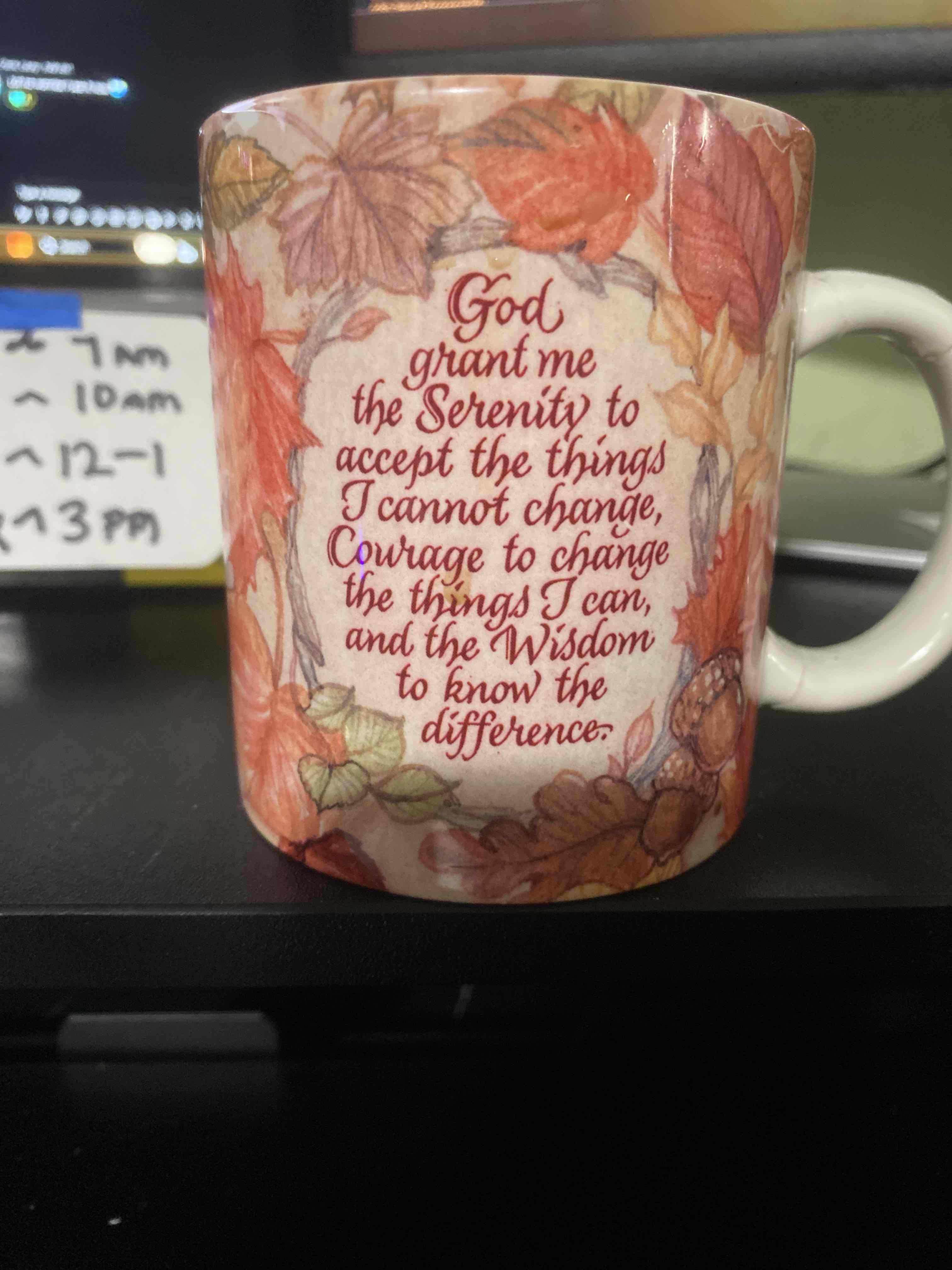 Despite the serenity prayer being, well a religious prayer, if I drop the "god" and say it like a mantra, it becomes just that, a mantra. An affirmation or reminder on how to handle things on the fly, in the moment, throughout the day. That, I can dig.